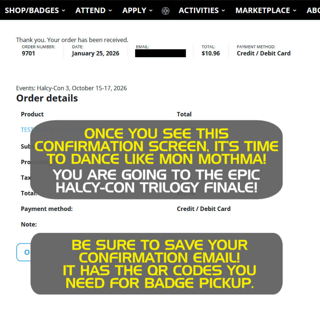 HALCY-CON 3: Badge Info & Checkout Instructions