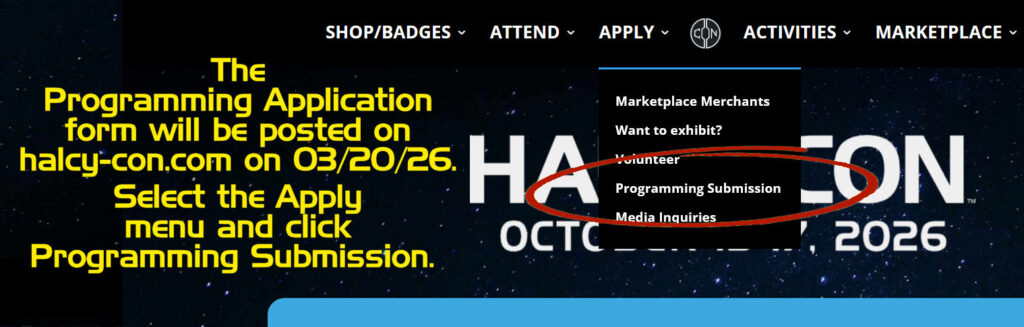 To best match the new immersive event format, all programming at Halcy-Con 3 will be ‘in-universe’, which opens up a whole new facet of fun and meaningful programming options! The Programming types are Panels, Presentations, Roundtables, Games, Workshops and Special Activities/Interactive.